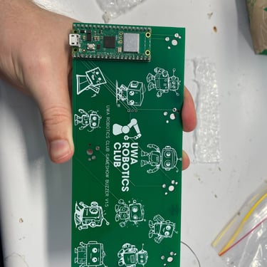 Custom "Gameshow buzzers" designed to be used for quiz-nights, with the goal of loaning the buzzers out to other clubs and outside groups to raise money for the UWA Robotics Club